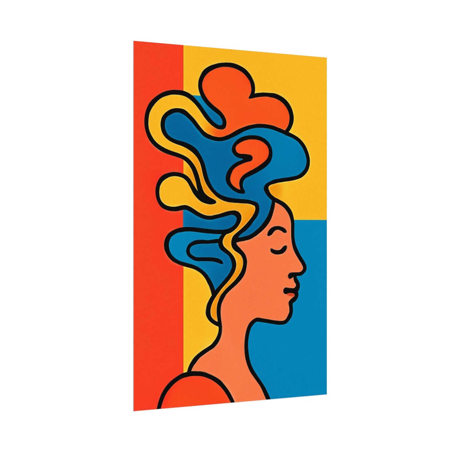 Poster Print - Colorful Abstract Woman with Textured Watercolor Art - GenZ & Millennials